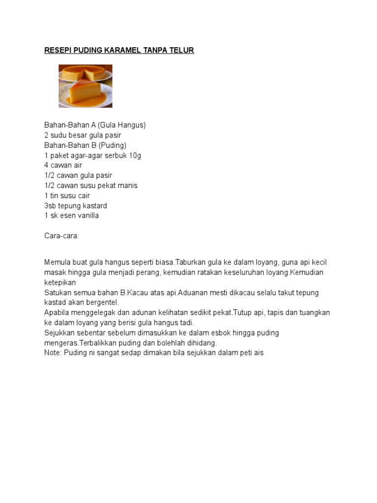 Resepi Puding Karamel Tanpa Telur Pdf