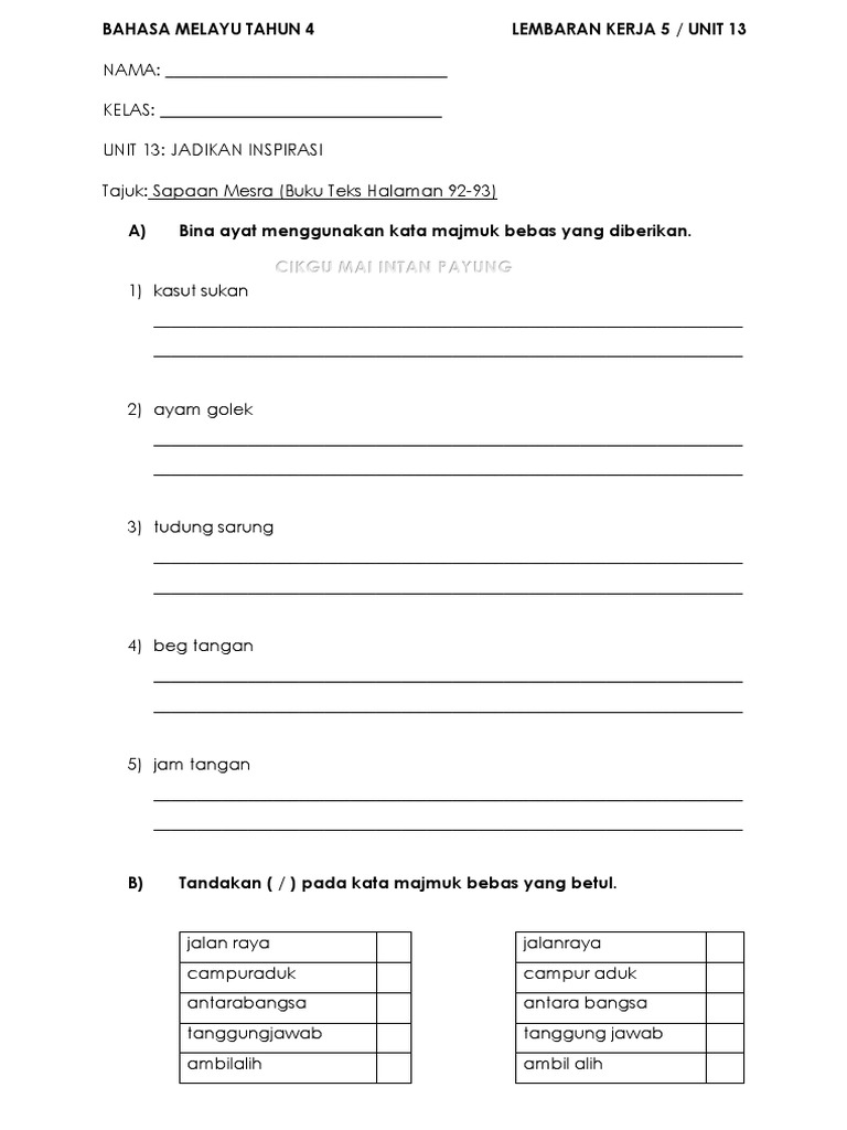 Lembaran Kerja Bahasa Melayu Tahun 5 Pdf